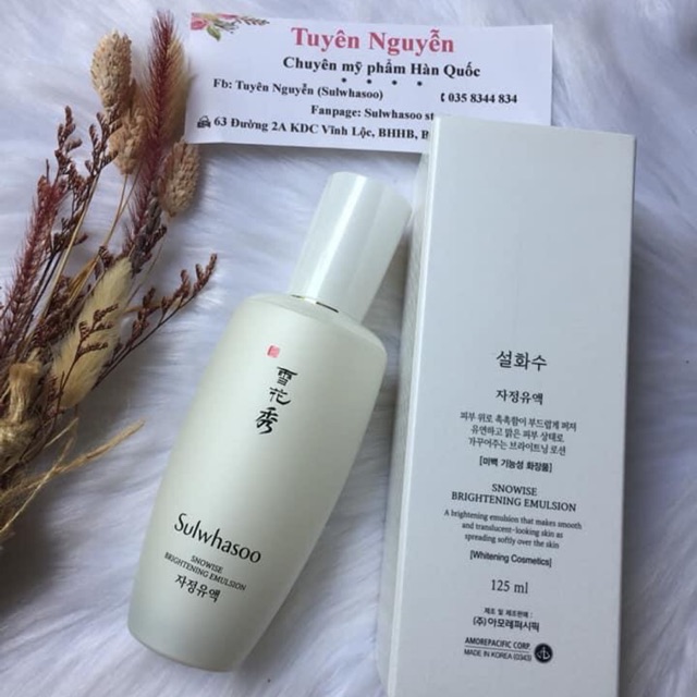 💁♀️ 𝐒𝐮̛̃𝐚 𝐝𝐮̛𝐨̛̃𝐧𝐠 𝐛𝐚̣𝐜𝐡 𝐬𝐚̂𝐦 𝐒𝐮𝐥𝐰𝐡𝐚𝐬𝐨𝐨 𝐒𝐧𝐨𝐰𝐢𝐬𝐞 𝐁𝐫𝐢𝐠𝐡𝐭𝐞𝐧𝐢𝐧𝐠 𝐄𝐦𝐮𝐥𝐬𝐢𝐨𝐧 💧Dung tích: 125ml 💥Công dụng: 👍Nuôi dưỡng da và tối ưu hóa hiệu quả các thành phần dưỡng trắng Snowise Tri-White Complex™, hợp chất đầu tiên trên thế giới ứng dụng hiệu quả làm trắng từ nhân sâm. Snowise Tri-White Complex™ chứa Saponin Bạch sâm, có tác dụng ức chế quá trình sản sinh melanin. và Bạch Hoa Xà Thiệt Thảo chăm sóc làn da bị "xuống cấp" do nhiệt độ da tăng cao. Đồng thời Polysaccharides Bạch Sâm kích thích quá trình tuần hoàn da, làm da săn chắc, cải thiện sắc tố da tận sâu bên trong, mang lại làn da sáng hồng, rạng rỡ. 👍Lớp sữa dưỡng cho làn da rạng ngời và tối ưu hóa thành phần làm trắng Chiết xuất từ hoa mẫu đơn có tác dụng làm dịu da. Polysaccharides trong bạch sâm bổ sung năng lượng cho da, duy trì làn da sáng ngời. 👍Thẩm thấu sâu để nuôi dưỡng da mà không gây bết dính. Thành phần làm ẩm trong sữa dưỡng có nguồn gốc từ thiên nhiên tạo cảm giác mềm mại, không nhờn rít, mang lại vẻ tươi sáng, rạng rỡ cho làn da. - - - - - - - - - 🚚Khách nhận hàng rồi mới thanh toán trực tiếp với bưu tá ( ship COD).️ Freeship cho đơn hàng từ 500k 🏠 63 đường 2A, Khu dân cư Vĩnh Lộc, phường Bình Hưng Hòa B, quận Bình Tân, Tp.HCM. 📞 035 8344 834 ( Em Tuyên) ❤️Sỉ liên hệ facebook Hera Yeon Chi (nhân viên tập đoàn Amorepacific tại Hàn). ‼️Bên em từ full size đến mini sample đều là hàng công ty nội địa Hàn, giá không thể rẻ nhất thị trường nhưng chất lượng tuyệt đối.