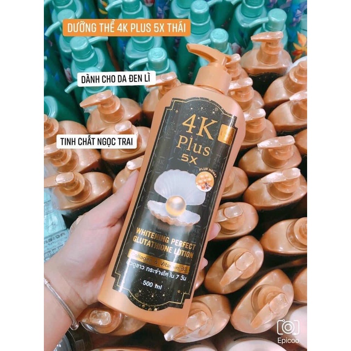 Sữa Dưỡng thể 4k pluss 5x Whitening perfect Glutathione LOTION 500ml Thái lan (Chai vòi)