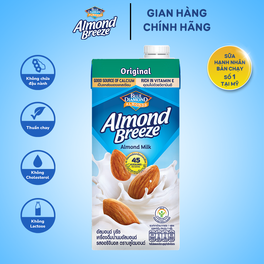 Sữa hạt hạnh nhân ALMOND BREEZE (Sản phẩm của Tập đoàn BLUE DIAMOND – Mỹ) là thức uống bổ dưỡng hàng ngày tốt cho sức khỏe. Đặc biệt THÍCH HỢP VỚI KHÁCH HÀNG BỊ DỊ ỨNG VÀ KHÔNG DUNG NẠP ĐƯỢC ĐƯỜNG SỮA (Lactose); những người ăn chay; phụ nữ mang thai và cho con bú với thành phần dưỡng chất giàu Canxi và Vitamin E; không Cholesterol và không chứa các thành phần từ đậu nành và sữa.