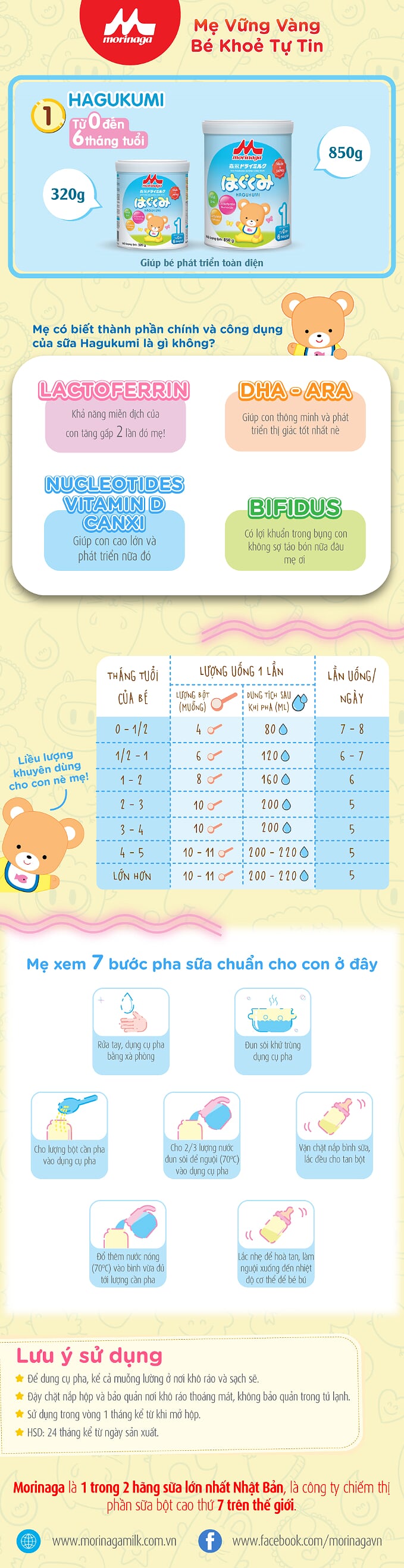 - Sản phẩm dinh dưỡng Morinaga được sản xuất theo dây chuyền tự động đạt chuẩn ISO 22000, dựa trên nghiên cứu mới nhất về nhu cầu dinh dưỡng cho trẻ theo Tiêu chuẩn quốc tế Codex và Bộ Y tế Việt Nam.