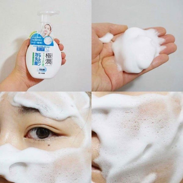 Sữa rửa mặt Hada Labo Gokujyun Hyaluronic Acid Bubble Face Wash với công thức dịu nhẹ cùng độ PH = 5 cân bằng, phù hợp với mọi loại da. Sản phẩm có bao bì là chai màu trắng. Ngoài khả năng làm sạch tận sâu lỗ chân lông nhờ lớp bọt nhỏ li ti còn có khả năng dưỡng ẩm tuyệt vời. Công thức "Super Hyaluronic Acid" có khả năng giữ ẩm gấp 2 lần axit hyaluronic thông thường. Làn da được rửa sạch bụi bẩn, dầu thừa nhưng vẫn giữ đủ ẩm cho da mềm mịn. Da không bị khô, căng rát khó chịu sau khi sử dụng.
