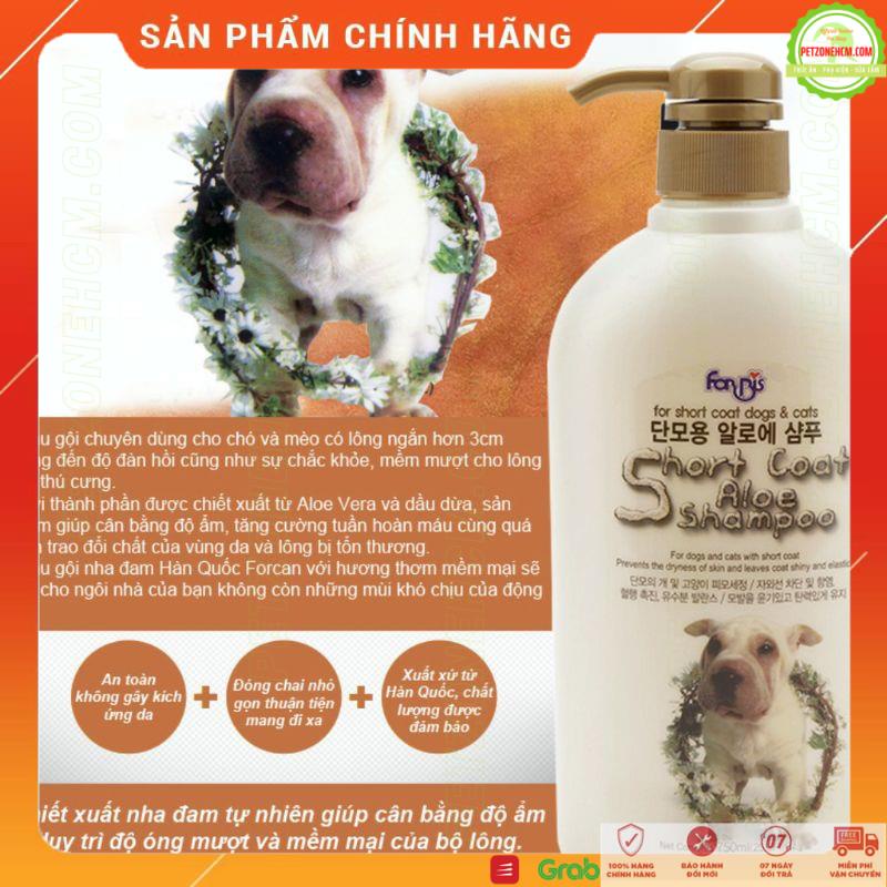 Sữa Tắm cho chó Forcans Hàn Quốc ⚜ FREESHIP ⚜ Short Coat ALOE SHAMPOO Chai 750ml dùng cho chó lông ngắn - PetzoneHCM