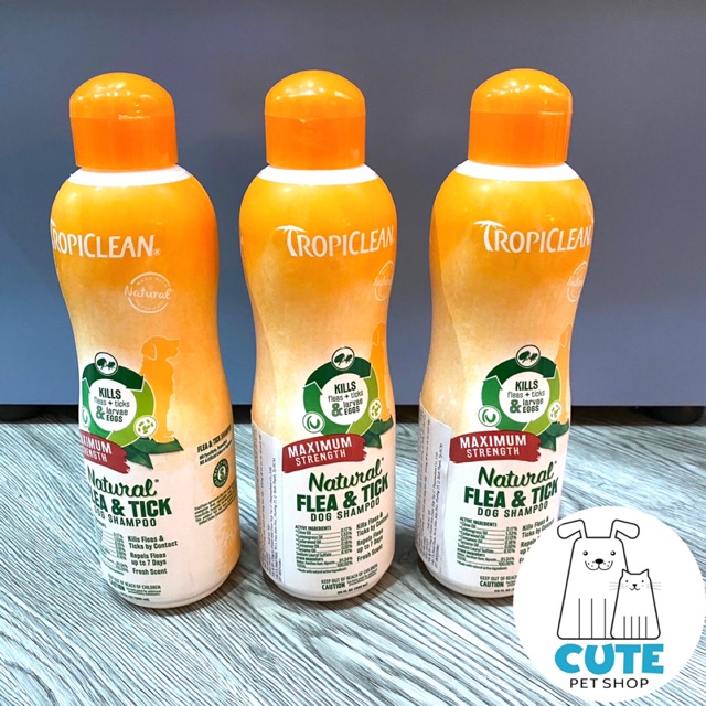 SỮA TẮM ĐẶC TRỊ VE, BỌ CHÉT TRÊN CHÓ (TROPICLEAN, MỸ) 💰Giá: #395k * Xuất xứ : TropiClean, Mỹ. Đã được kiểm định nghiêm ngặt về chất lượng và độ an toàn. * Sản phẩm chứa hỗn hợp các tinh dầu tự nhiên như đinh hương, sả, quế… có thể diệt được ve, bọ chét, muỗi và ngăn không cho chúng quay trở lại trong vòng 7 ngày. * Giúp làm dịu làn da bị kích ứng, giữ hương thơm và hiệu quả kéo dài. * Phù hợp cho chó từ 12 tuần tuổi trở lên.