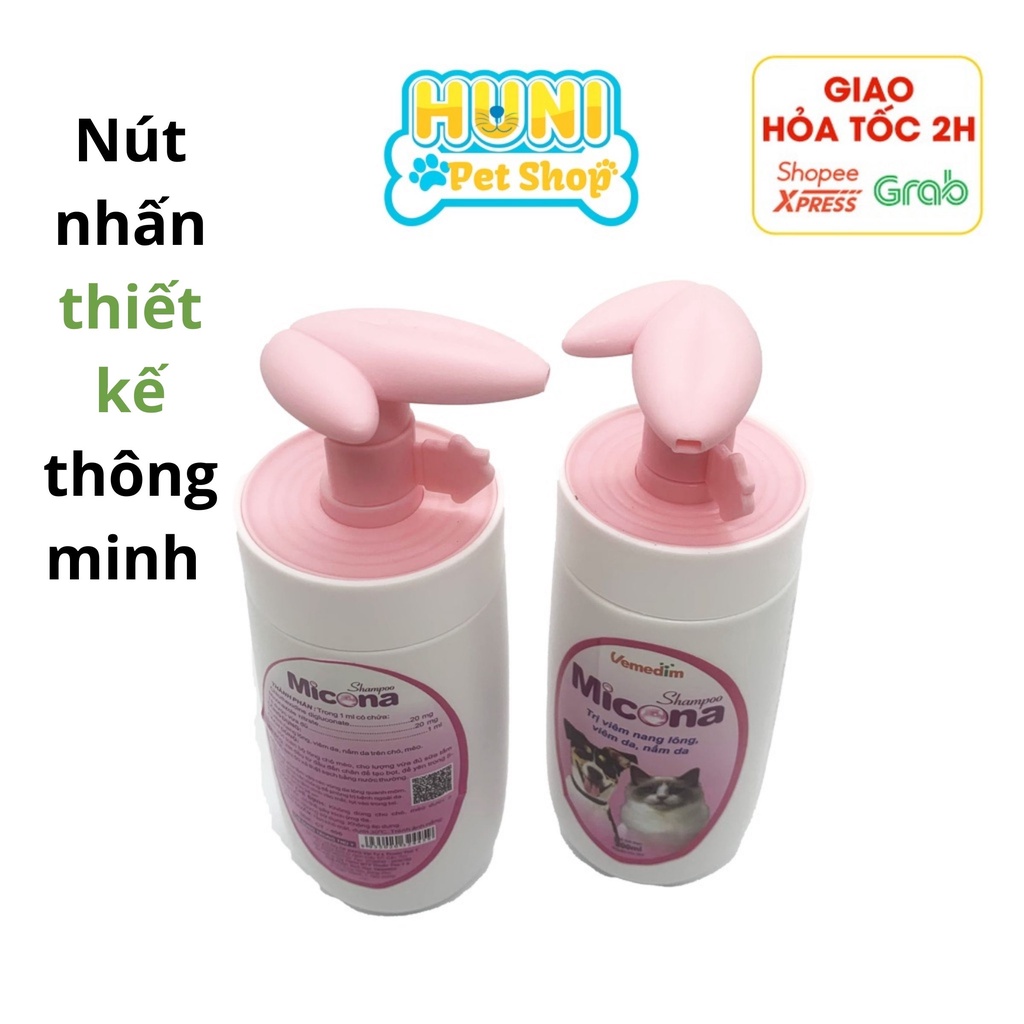 Sữa tắm diệt nấm toàn thân, viêm da - nang lông dầu tắm cho chó mèo Micona Shampoo, Vemedim 200ml - Huni Petshop