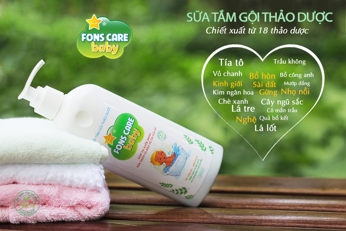 Sữa tắm gội thảo dược Fons Care Baby sẽ nhẹ nhàng rửa sạch bụi bẩn, dầu thừa và bảo vệ da của bé, giữ ẩm cho da, làm mát da, ngăn ngừa và chăm sóc vùng da bị rôm sảy, lở ngứa, lông măng, thủy đậu, mụn nhọt, hăm da, phổng da ở trẻ sơ sinh và trẻ nhỏ. Ngăn ngừa và làm sạch các mảng bám trên da đầu ở trẻ nhỏ.