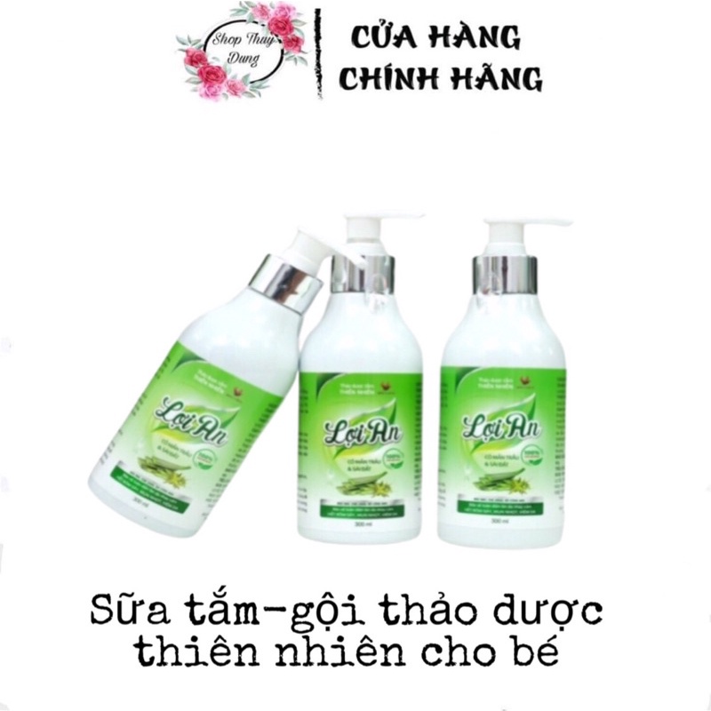 Sữa tắm - gội thảo dược Lợi An là giải pháp cho những người đang có nhu cầu cải thiện tình trạng: rôm sảy, mụn nhọn, mẩn ngứa, lông măng, viêm da cơ địa hay muốn chống cảm mạo, ho, sổ mũi, hỗ trợ phòng, chống muỗi, côn trùng cắn. THÀNH PHẦN: Cỏ mần trầu, Sài đất, chè vằng, ngải cứu, Xuyên tâm liên, bồ công anh, núc nác, bồ kết, gừng, Tinh dầu sả chanh, Tinh dầu hương nhu. TÁC DỤNG: - Tránh được tình trạng dị ứng, mẩn đỏ trên da do các thành phần hóa học có trong sữa tắm thông thường. Nhiều người không biết rằng trong sữa tắm dù bình dân hay cao cấp đều có hàm lượng nhỏ hóa chất tính kiềm tính tẩy rửa, nhiều bọt. Khi sử dụng sẽ khiến làn da, nhất là da trẻ nhỏ bị khô, thậm chí đỏ, ngứa, lâu dần làm da yếu đi. - Làm sạch làm sạch da và tóc, làm sạch bụi bẩn hàng ngày, bảo vệ da chống lại vi khuẩn. - Dưỡng ẩm hữu cơ từ thiên nhiên, an toàn với làn da của trẻ sơ sinh và trẻ nhỏ. - Giảm hẳn tình trạng ngứa, khó chịu, rôm sảy, đỏ ứng. - Tinh dầu trong nước tắm thảo dược còn giúp giữ ấm cho cơ thể , hạn chế cảm mạo, ho, sổ mũi và còn hỗ trợ phòng, chống muỗi, côn trùng cắn. - Tinh dầu của các thảo dược có trong Thảo dược tắm thiên nhiên Lợi An giúp người dùng, đặc biệt là trẻ nhỏ thư thái, dễ đi vào giấc ngủ hơn - Sử dụng thảo dược tắm thiên nhiên Lợi An lâu dài có thành phần tự nhiên không bào mòn, không làm yếu làn da, nhất là làn da em bé.