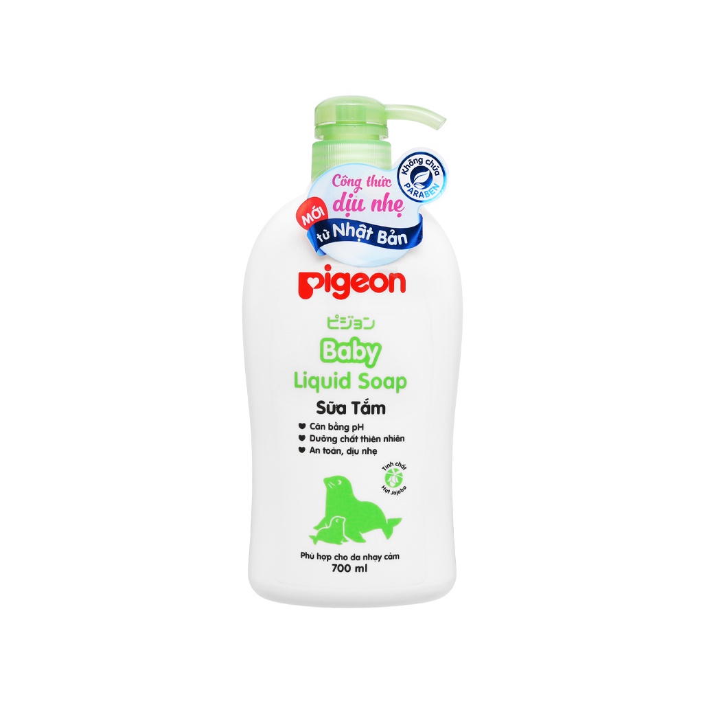 Sữa tắm Pigeon 700ml - Baby Liquid Soap (MP4605) Dành cho da nhạy cảm, chứa tinh chất dầu hạt Jojoba dễ hấp thụ vào da, không gây kích ứng da, không bết dính, tạo bọt mịn, làm sạch nhẹ nhàng, không làm cay mắt bé. Hương thơm dễ chịu, dưỡng tóc bé chắc khỏe và dưỡng da mềm mịn.