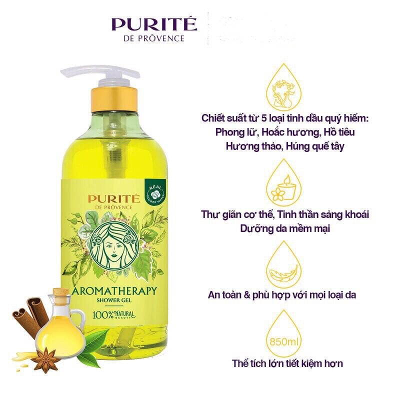 Purité de Prôvence là sản phẩm làm đẹp, lấy cảm hứng từ thiên nhiên vùng Provence, nước Pháp. Chắt lọc thành phần thiên nhiên phương Tây quý đưa vào sản phẩm để gói trọn dưỡng chất tinh túy từ thiên nhiên, giúp nuôi dưỡng làn da, mái tóc phụ nữ hiệu quả và an toàn nhất.