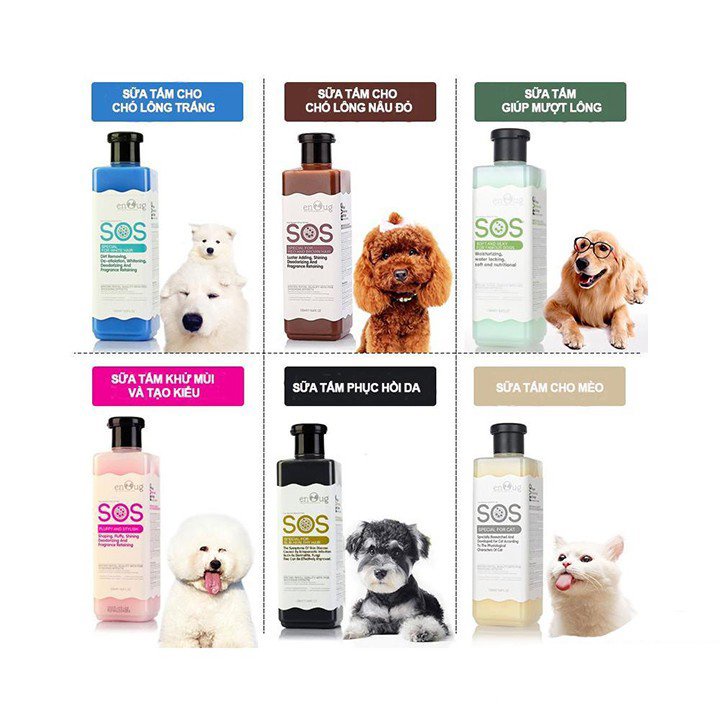 Giới thiệu [Mã PET50K giảm Giảm 10% - Tối đa 50K đơn từ 250K] Sữa Tắm SOS Chó Mèo Khử Mùi Hôi Dưỡng Lông Mượt Tránh Rụng Lông