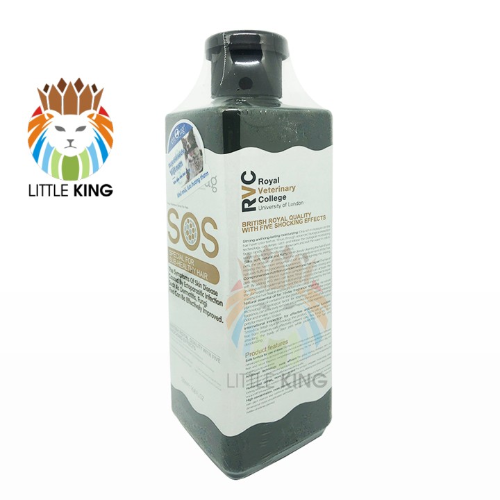 Chăm Sóc Thú Cưng > Làm đẹp cho thú cưng > Chăm sóc lông || Sữa tắm SOS phục hồi da do viêm da, nấm cho chó mèo dung tích 530ml Chai màu đen Little King pet shop