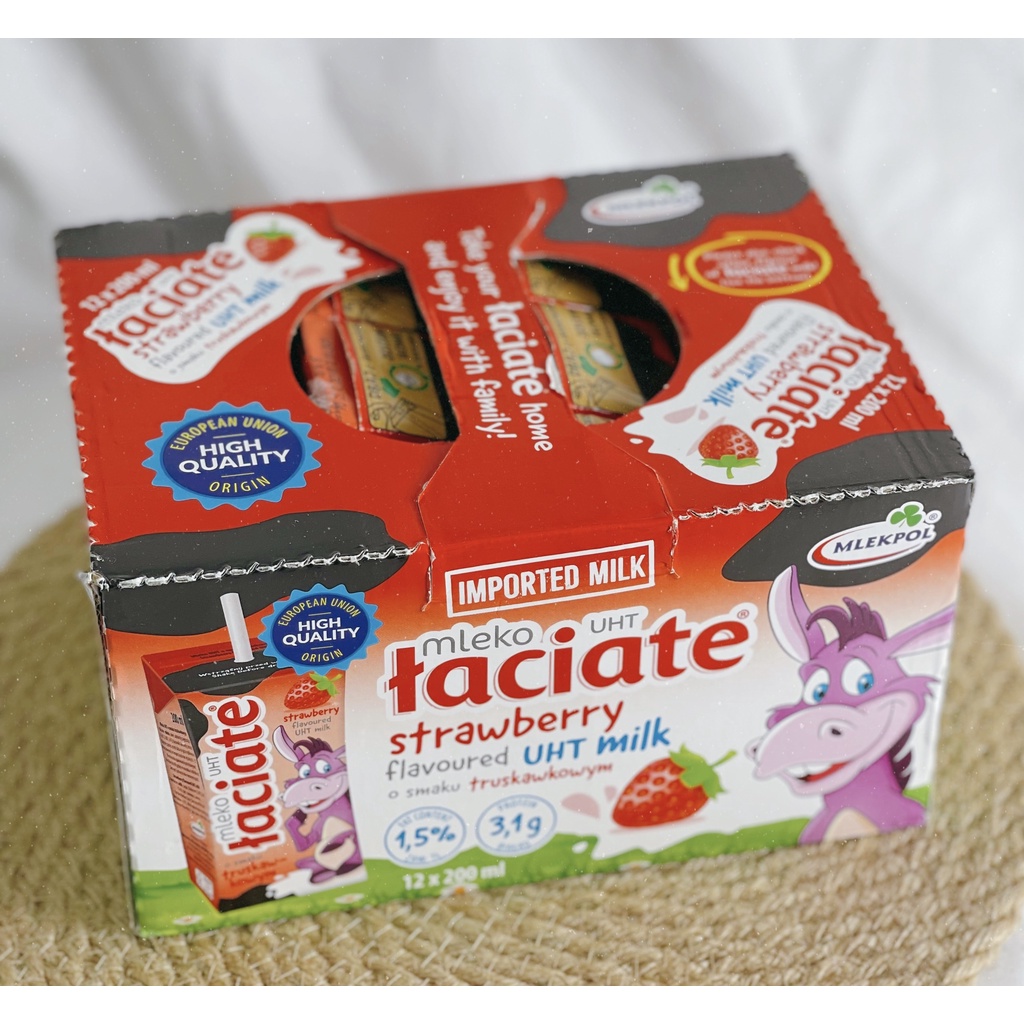 - Sữa Laciate - sữa béo siêu tốt - Sữa tươi tiệt trùng Laciate 200ml giàu canxi giúp bé cao lớn hơn Với công nghệ tiệt trùng UHT, các vi khuẩn bị loại bỏ hoàn toàn bởi nhiệt độ cao sau đó làm lạnh đột ngột giúp giữ nguyên được giá trị dinh dưỡng của sữa. Nếu bé nhà bạn đã trên 2 tuổi, hãy cho bé dùng ngay Laciate để thưởng thức hương vị sữa Ba Lan ngon tuyệt. - Quy cách đóng gói: 12 hộp/thùng - Có 4 vị cho bé lựa chọn: - Dâu (ít đường) - Socola (ít đường) - Vani (ít đường) - Nguyên kem (không đường)