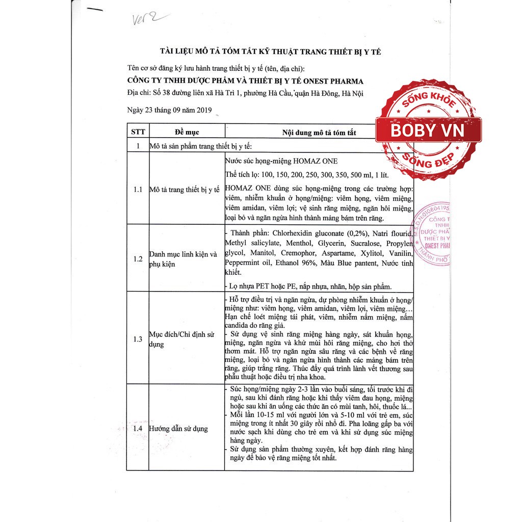 Sức Khỏe > Chăm sóc cá nhân > Vệ sinh răng miệng > Nước súc miệng || Nước Súc Họng - Miệng HOMAZ One 250ml