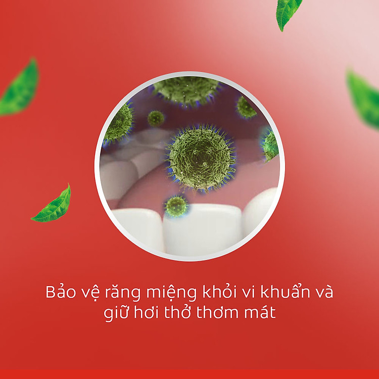 - Chiết xuất Trà Xanh thanh mát, sảng khoái, công Thức Không Chứa Cồn không gây hại men răng, không cảm giác cay rát