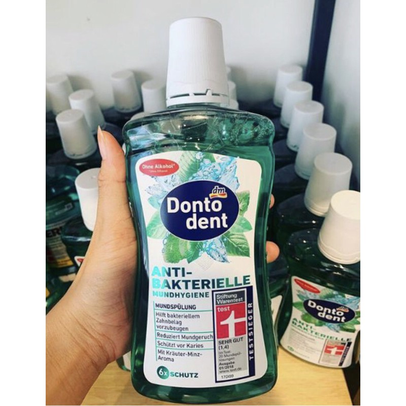 Nước súc miệng Dontodent Anti-Bakterielle với công thức 6 trong 1: * Chống vi khuẩn & mảng bám trong miệng * Chống sâu răng & ngăn ngừa các bệnh về nướu * Tăng cường men răng * Nuôi dưỡng niêm mạc miệng * Cung cấp hơi thở thơm mát kéo dài * Hương thơm thảo dược bạc hà Thành phần gồm florua, không chứa lactose và thuần chay. 🔴 Xuất xứ: Đức 🔴 Định lượng: 500ml 🔴Hướng dẫn sử dụng: * Dùng ngày 2 lần * Sau khi đánh răng, súc miệng với khoảng 10-20 ml nước súc miệng Dontodent Anti-Bakterielle (không pha loãng) trong khoảng 30 giây. * Nhổ ra và súc miệng lại bằng nước sạch. * Lưu ý KHÔNG NUỐT * Sản phẩm phù hợp cho trẻ từ 12 tuổi trở lên và người lớn.