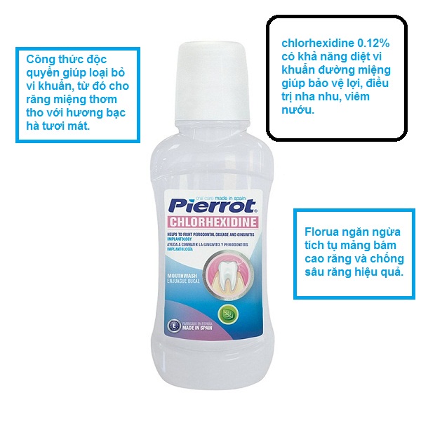 Sức Khỏe > Chăm sóc cá nhân > Vệ sinh răng miệng > Nước súc miệng || Nước súc miệng sát khuẩn Pierrot Chlorhexidine 250ML