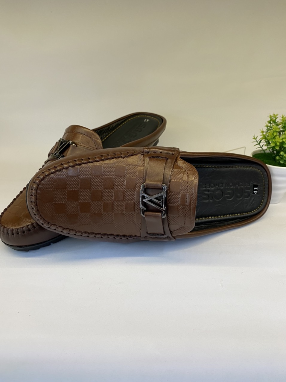 -Giày sục nam da bò-S72 Màu nâu đập vân cá sấu được sản xuất bằng công nghệ hiện đại ép keo nóng đế khâu chắc chắn.