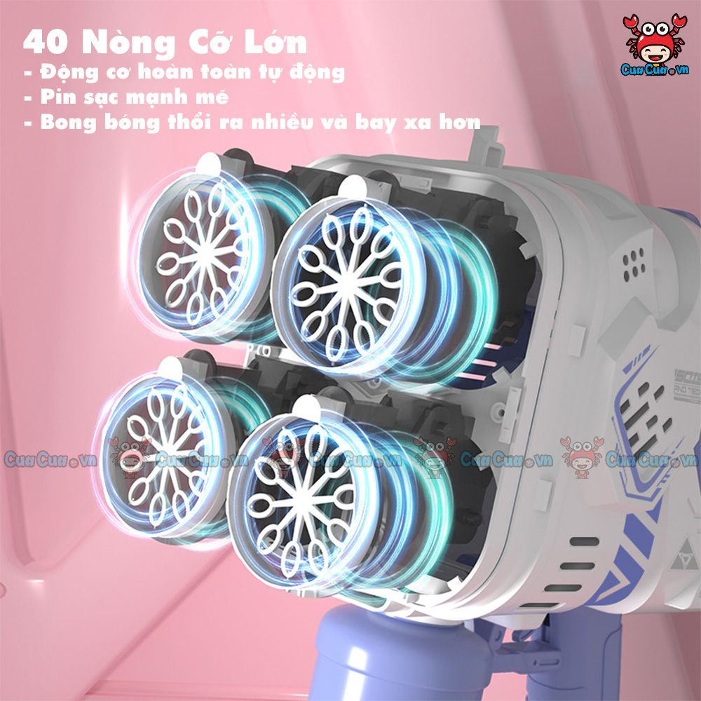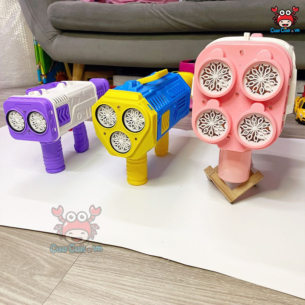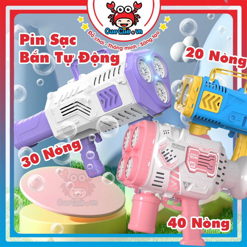 Súng bắn bong bóng phiên bản mới có rất nhiều mẫu 20 nòng 30 nòng 40 nòng đều bắn tự động cùng lúc và dùng pin sạc nên bắn siêu mạnh, thổi rất nhiều bong bóng và bong bóng bay cao, bay xa