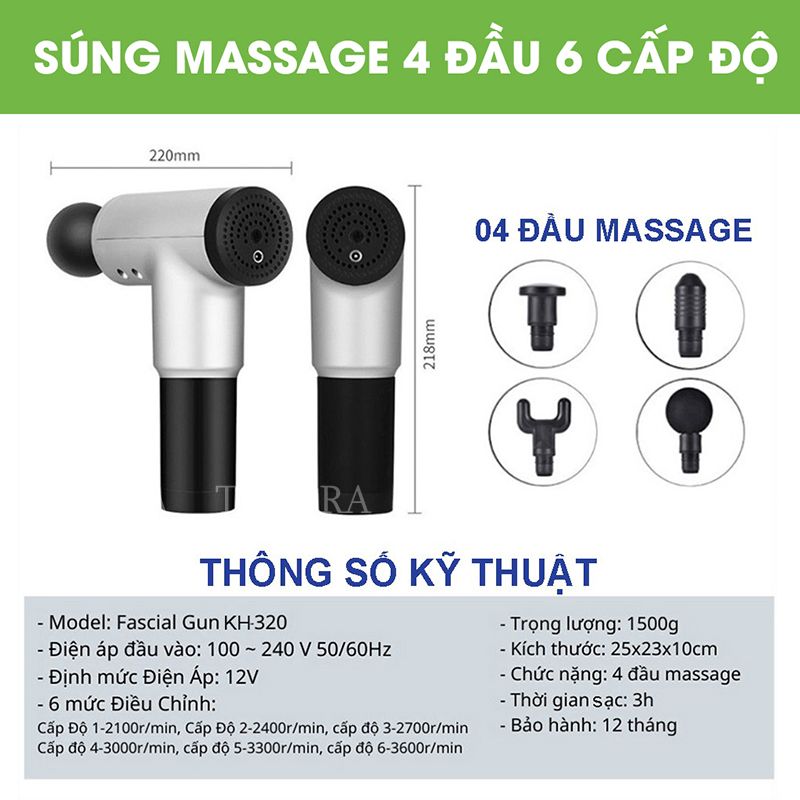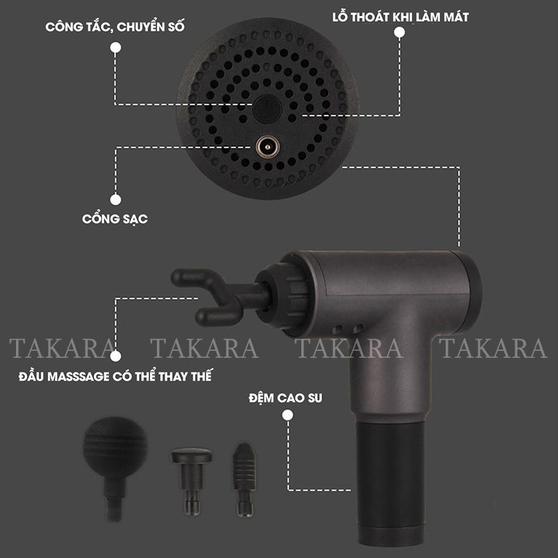 Súng Massage Cầm Tay, Máy Mát Xa Trị Liệu Toàn Thân TAKARA Với 4 Đầu Thay Thế Và 6 Cấp Độ Giảm Đau Mỏi Cơ GB-820