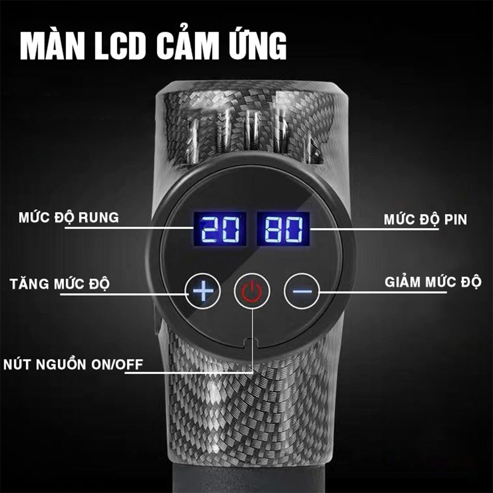 Đặc điểm nổi bật của sản phẩm Máy Massage cầm tay cao cấp 6 đầu 30 cấp độ trị đau nhức toàn thân hiệu quả: - Súng Massage cầm tay có 6 đầu Massage khác nhau, hỗ trợ nhu cầu mát xa chuyên sâu. - Máy giúp giảm cứng cơ và đau nhức, tăng lưu thông máu. - Súng Massage có Motor mạnh mẽ với 30 tốc độ điều chỉnh để phù hợp với cơ thể bạn. - Pin lithium dung lượng lớn 2400 mAh, thời gian sạc trong 3 tiếng. - Máy Massage với lớp vỏ ABS cao cấp chịu lực rung sốc, lực va đập cao, an toàn khi sử dụng. - Nhỏ gọn dễ dàng mang theo và có thể sử dụng liên tục từ 6 - 8 tiếng. - Súng Massage cầm tay với Motor được cải tiến giảm thiểu tiếng ồn, tăng tuổi thọ sử dụng cho pin, dùng công nghệ rung cộng hưởng tạo ra lực đánh vào các cơ quan đang mỏi trên cơ thể. -Phù hợp làm quà tăng ý nghĩa cho người thân