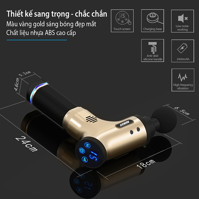Nikio NK-171 được thiết kế với kiểu dáng dạng Máy nên rất dễ cầm nắm trong quá trình Massage. Kết hợp cùng gam màu gold tạo nên sư sang trọng cho sản phẩm. Vỏ ngoài chất liệu nhựa ABS cao cấp giúp sản phẩm luôn sáng bóng đẹp mắt. Tay cầm được thiết kế công thái học, tạo cảm giác chắc chắn, giảm thiểu rung lắc khi sử dụng.