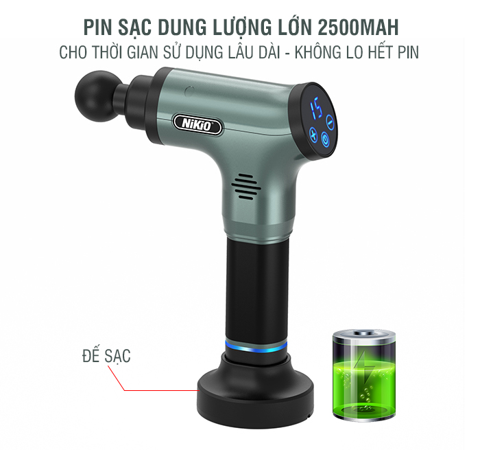Ưu điểm của Máy (súng) Massage cầm trị đau nhức căng cơ pin sạc NIKIO NK-172 - 110W - Màu Xanh rêu