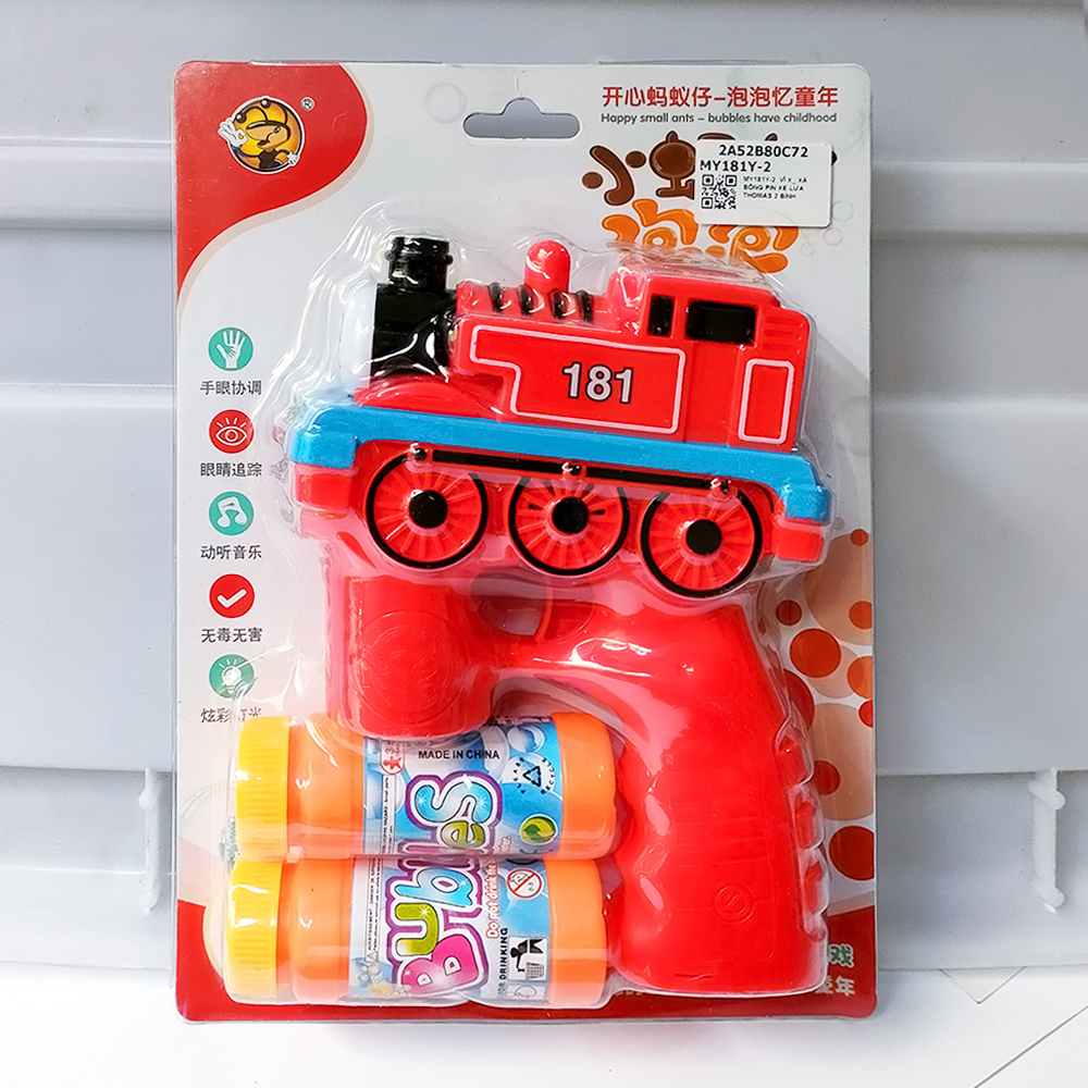 • Bộ sản phẩm gồm: 1 đồ chơi bắn bong bóng và 2 chai nước xà phòng