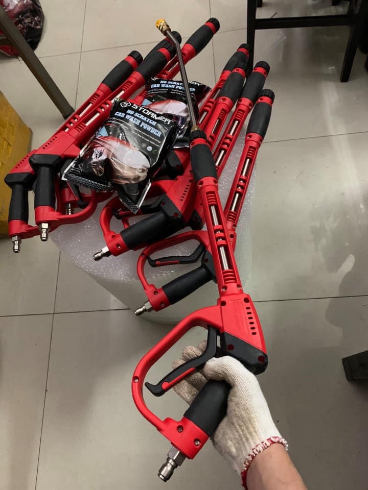 Súng rửa xe cao áp là một trong những phụ kiện máy rửa xe cần thiết được dùng để lắp vào máy rửa xe, được sử dụng nhiều trong các cửa hàng rửa xe máy, ô tô.Súng rửa xe gọn nhẹ, dễ dàng di chuyển để làm vệ sinh ở những nơi hẹp nhất như gầm oto, các xe chuyên dụng, băng truyền sản xuất,…