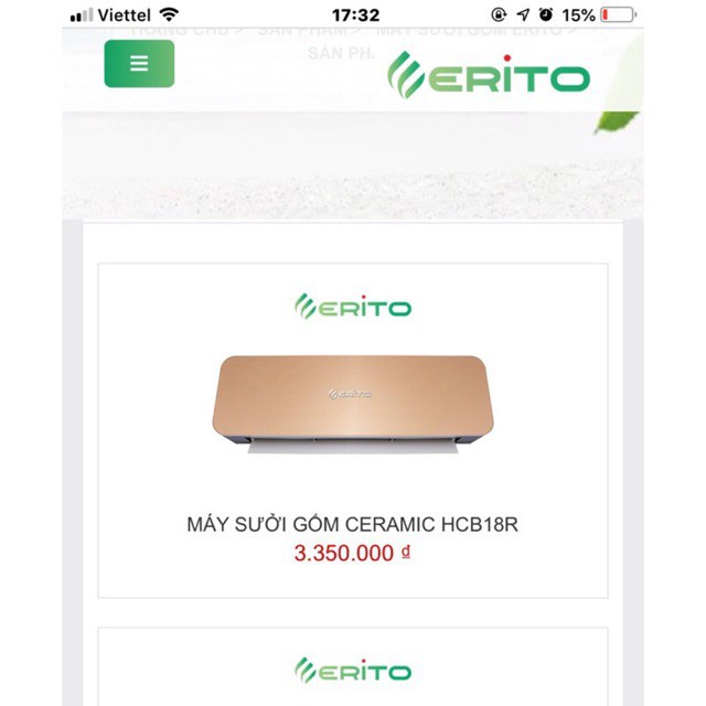 Giới thiệu Sưởi gốm Erito cao cấp HCB18R Bảo hành chính hãng 12 tháng Lỗi 1 đổi 1 trong 30 ngày