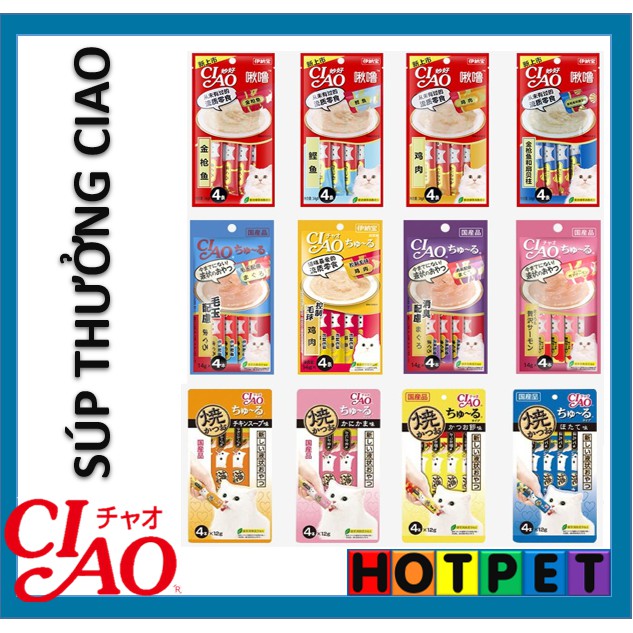 Ciao Churu chăm sóc sức khỏe từ trong ra ngoài cho các bé mèo Kích thích sự thèm ăn Dạng soup dễ tiêu hóa và hấp thụ , bổ xung thêm nước giúp hạn chế tối đa các bệnh về sỏi thận, tiết niệu… Giàu taurine và chất dinh dưỡng khác giúp mắt mèo sáng hơn,lông bóng mượt hơn. Giúp giải quyết những vấn đề như kén ăn, lông xơ xác ,mùi hôi miệng, thiếu chất, béo phì,lười uống nước Rất nhiều chất dinh dưỡng và các chất vi lượng giúp xương chắc khỏe, tăng sức đề kháng Công thức chế biến ít chất béo giúp mèo duy trì cơ thể lý tưởng Súp thưởng cho mèo Ciao Churu inaba là dòng sản phẩm súp thưởng được ưa chuộng nhất tại Nhật Bản và Singapore , do mùi vị hấp dẫn, nguyên liệu tươi ngon hảo hạng cùng tính sử dụng tiện lợi. Súp thưởng cho mèo sẽ hỗ trợ hiệu quả vấn đề búi lông, giảm mùi hôi khi đi ngoài, An toàn cho hệ tiêu hóa nhạy cảm của mèo. Sản phẩm được chế biến theo dạng cream mềm để Mèo có thể hấp thụ nhanh hơn chất dinh dưỡng. Đặc biệt hơn, Súp thưởng cho mèo Ciao Churu với công thức giàu độ ẩm cung cấp thêm lượng nước dồi dào sẽ giúp hạn chế tối đa các bệnh về sỏi thận, tiết niệu… Công thức Giầu tau rin và chất dinh dưỡng khác giúp mắt mèo sáng hơn, lông bóng mượt hơn Sản phẩm có rất nhiều vị để bạn lựa chọn cho chú mèo nhà bạn như vị cá ngừ, gà, sò điệp, cá hồi ...