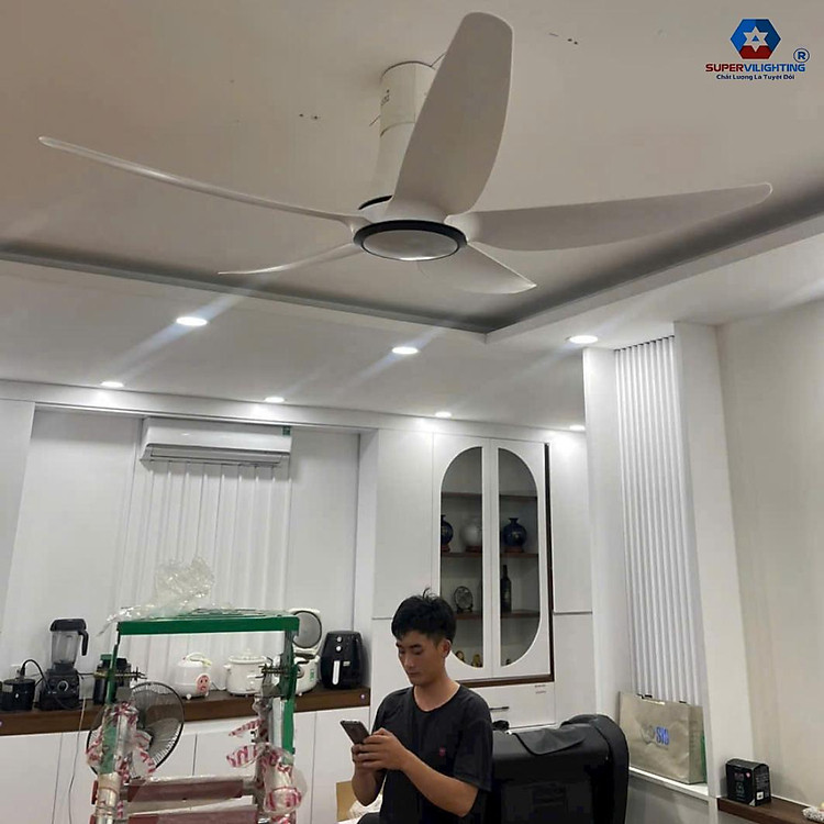 Thiết Kế 5 Cánh Hiện Đại: Sải cánh 1.45m (phù hợp cho phòng lớn) được làm từ nhựa ABS cao cấp (bền bỉ, nhẹ, dễ vệ sinh), tạo luồng gió mạnh mẽ và ổn định.