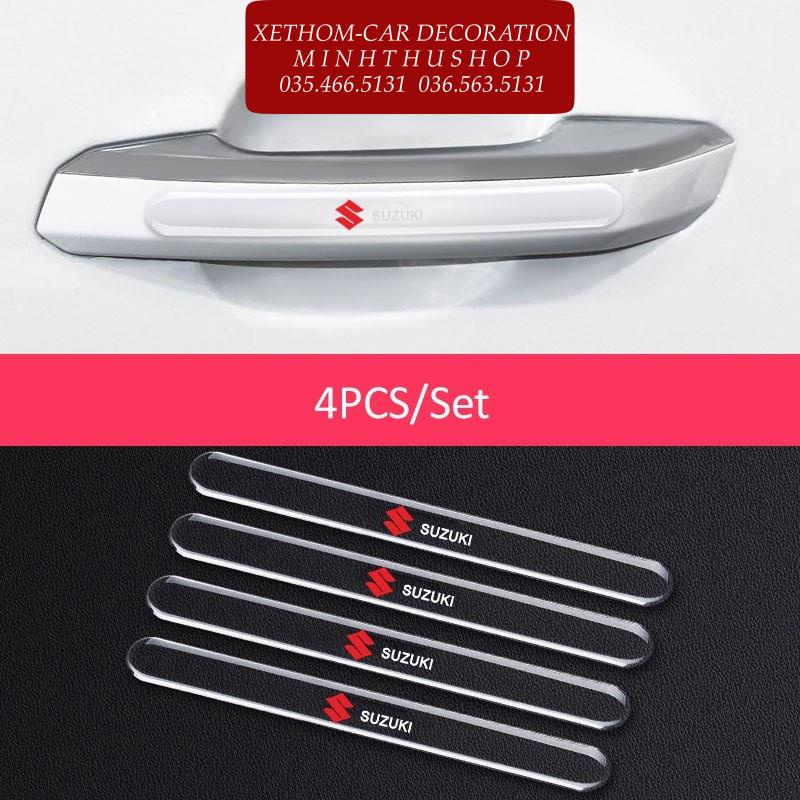 (Suzuki) Bộ 10 Miếng Dán Silicon Chống Xước Hõm Cửa, Tay Nắm Cửa và Gương Có Logo Hãng Xe (Suzuki)