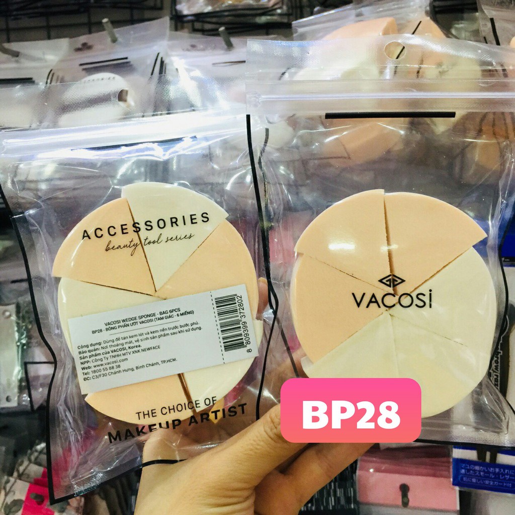 Giới thiệu Bông ướt tam giác nhọn Vacosi BP28 (Bịch 6 Bông) / Mút tán kem nền