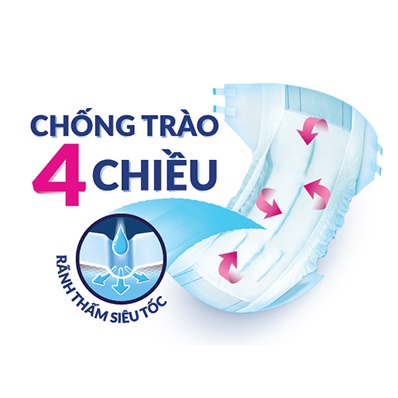 2/ Rãnh thấm siêu tốc dẫn chất lỏng thấm sâu, giữ bề mặt tã luôn khô thoáng.