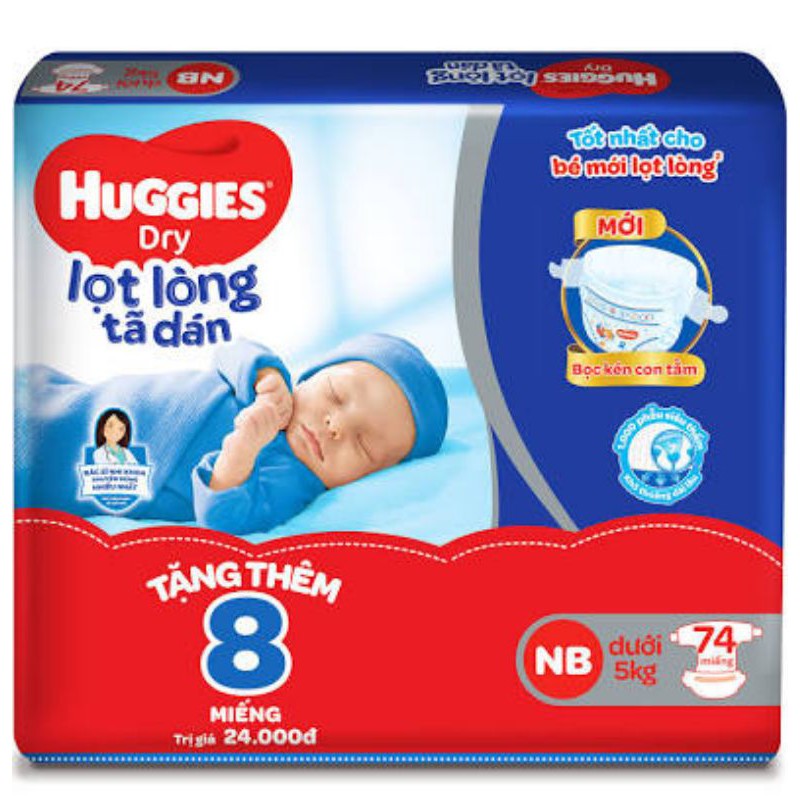 Tã dán sơ sinh Huggies NB74 tặng 8 tã dán