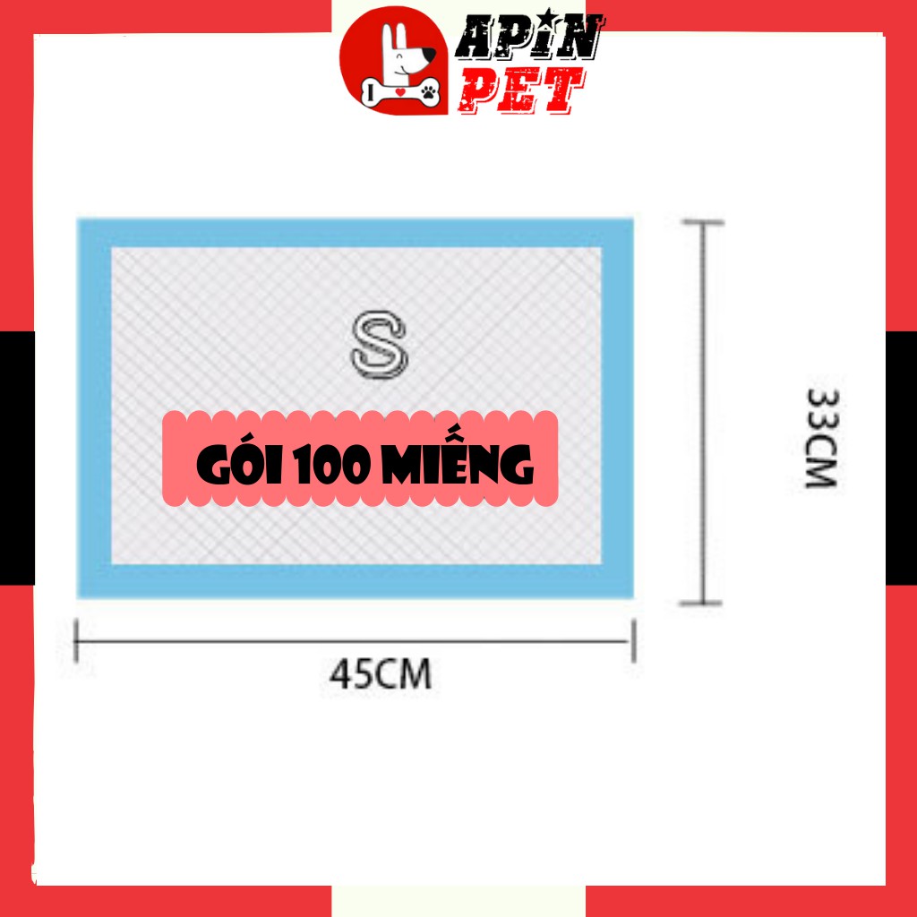 MÔ TẢ SẢN PHẨM: Màu sắc : màu xanh Size : có 2 size cho bạn lựa chọn -size S: 33x45cm 100 miếng -size M: 45x60cm 50 miếng Thiết kế 6 lớp chất lượng cao: -Lớp 1 : Vải siêu mềm thoáng khí -Lớp 2 : lớp giấy đạt chuẩn chất lượng -Lớp 3: Lớp thấm Polyme-Hấp thụ SPA cao phân tử-Thấm hút được rất nhiều lần khối lượng nước -Lớp 4 :Lớp bột giấy dày-Giúp hấp thu lượng nước nhanh chóng -Lớp 5 :Lớp giấy -Lớp 6: Lớp Màng PE chống thấm Đặc biệt : tã lót chuồng cho chó thấm hút nhanh tốt , không rỉ nước , sẽ không tạo mùi cho không gian nhà bạn THÔNG TIN SẢN PHẨM Bạn tùy chọn size theo nhu cầu của bạn nhé Tấm lót dễ sử dụng tiện lợi-An toàn cho thú cưng-Ngăn ngừa sự phát triển của vi khuẩn