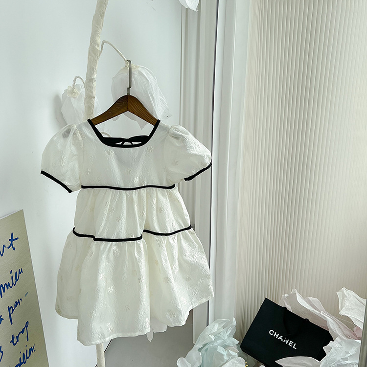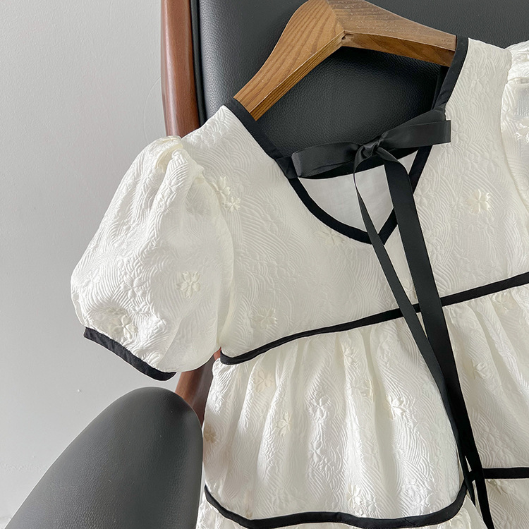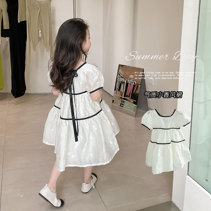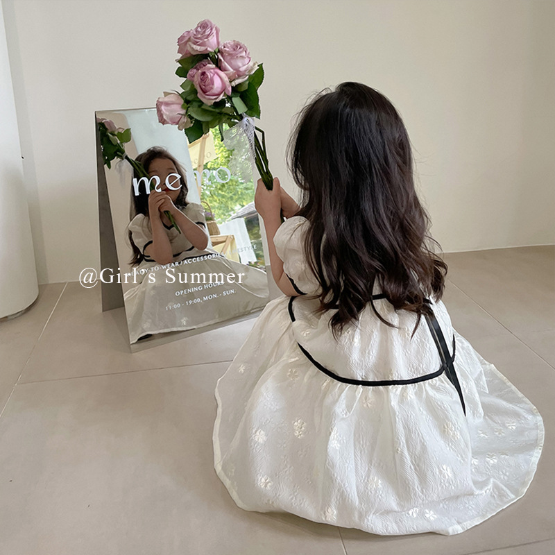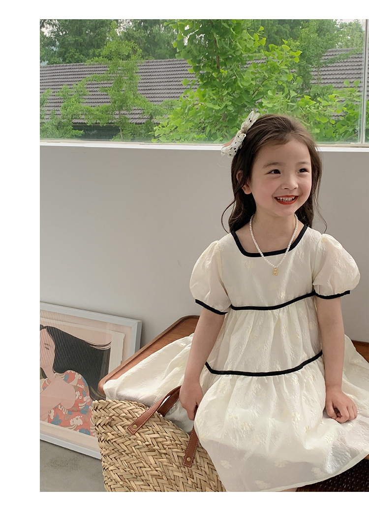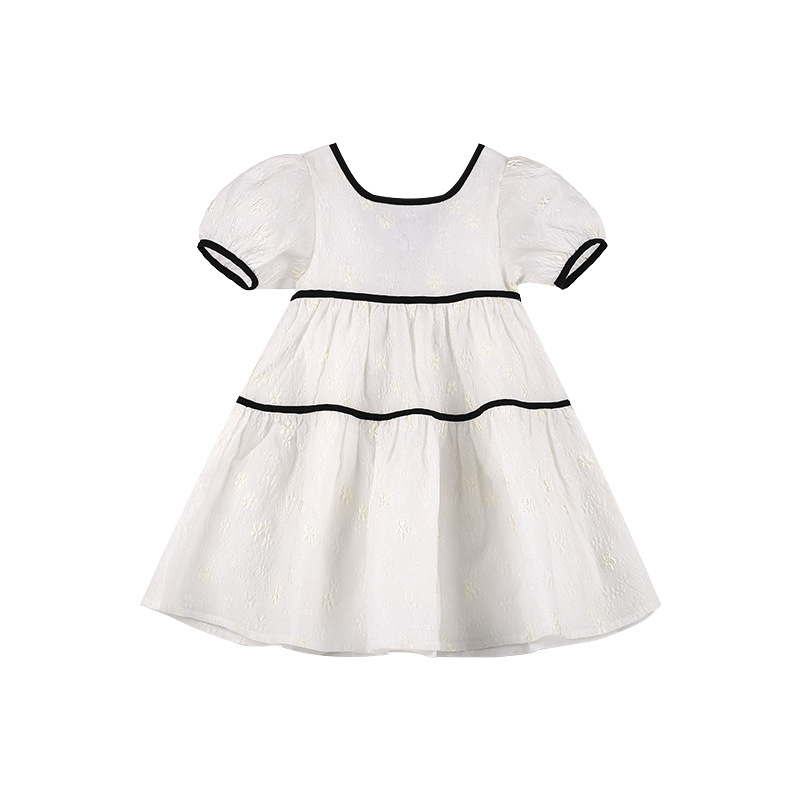 - Kiểu dáng: Dáng váy chữ A, cổ tròn, tay ngắn, bên trong váy lót 1 lớp lót cotton mỏng mềm