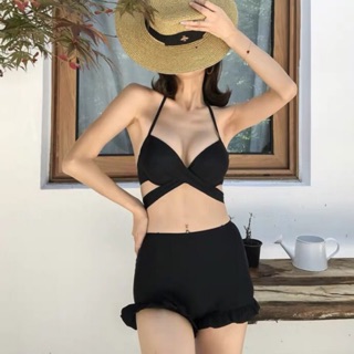 [ HÀNG ĐẸP] Bikini 2 mảnh nâng ngực quần cạp cao đen