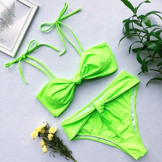 [BKN270] <ÂU> SET BIKINI XANH NEON NƠ VAI (CẠP CAO)