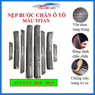 Bộ ốp bậc cửa trong ngoài nẹp bước chân Accent 2018-2019 vân Titan chống trầy trang trí xe