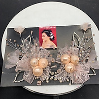 Cài tóc cô dâu mẫu mới 6-2022 Bộ đôi nơ cài tóc đính hạt trai Giangpkc