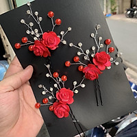 Phụ kiện cưới Giang . Cài tóc bộ cài tóc cô dâu đỏ hoa nhí không kèm bông tai SP2220892