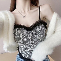 Áo Bra 2 dây ren hoa nhí cao cấp Croptop. Áo Ren thanh lịch freesize 40-57kg 2 màu đen trắng