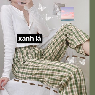 Quần Ống Rộng YAYSHOP dáng rộng cạp cao chất kate mềm mát - họa tiết caro dây kéo lưng thun (7 màu mới) hình thật