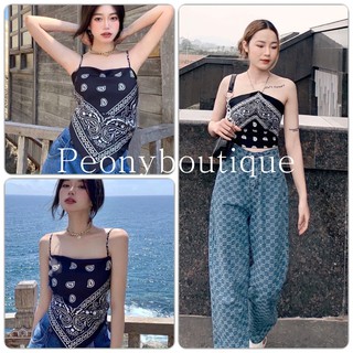 Áo 2 Dây Thổ Cẩm PEONYB Nữ [FREESHIP] Thun họa tiết vintage thắt nơ lưng, body dáng ôm màu trắng đen cá tính Ulzzang