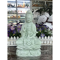 Tượng Phật Bà Quan Thế Âm Bồ Tát ngồi đài sen cầu bình an đá cẩm thạch trắng xanh - Cao 30 cm