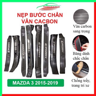 Ốp bậc cửa, nẹp bước chân Mazda 3 2015-2019 vân cacbon chống trầy bảo vệ trang trí xe