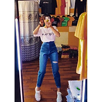 Quần Baggy Jean Nữ Bigsize Lưng Cao Ống Suông Rộng Rách Từ 40kg đến 80kg Hàng VNXK MS84