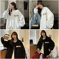 Áo Khoác Bomber Nỉ Bông Thêu Logo Sóng Nổi Varsity Form Rộng Unisex Nam Nữ Phối Phong Cách Ulzzang
