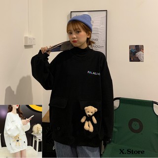 Áo Hoodie Nữ form rộng Cotton Nỉ da cá (Kèm hình thật chất áo có Logo Thương hiệu) 3 chú Gấu BEAR giơ tay