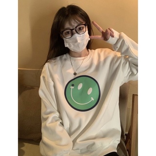 Áo nỉ cổ tròn mặt cười xanh nghiêng TT